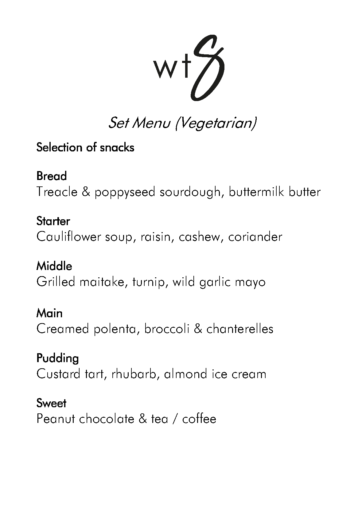 The menu evolves weekly with the best available produce and is currently priced at £75 per person. To reflect the ongoing rise in food and staffing costs this will be increasing to £80 from the 1st November 2025.
